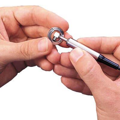 The straight F0S and N0S Microprobes have a quick release adapter that makes them constant pressure probes for alignment on small, flat or curved parts. This adapter is held in place by a spring. If the sleeve is not required, simply pull it off the probe.
