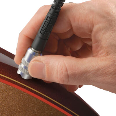 With our smallest measuring tip, longest probe length and best thin-film accuracy, this instrument is ideal for measuring on small parts, hard-to-reach areas, or close to edges.