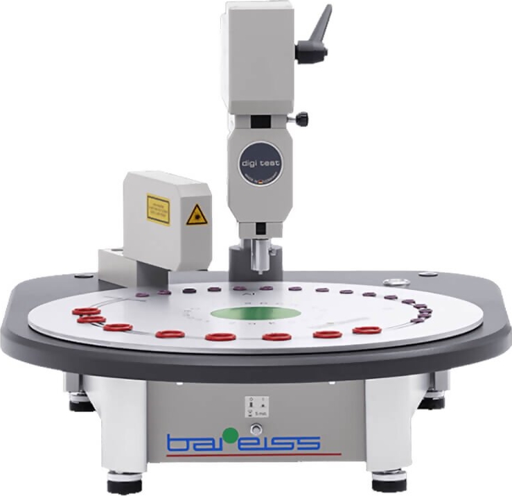 The Bareiss BaRotation Automatic O-Ring Hardness And Thickness Tester is successfully improved the testing capacity of the instrument through the automatic turntable and positioning by measuring the time and procedures required for a single product. It is equipped with a high-performance laser module to accurately locate the highest point or middle point of the O-ring, and then The O-ring is automatically taken to the hardness test area for testing by laser positioning. All procedures are suitable for small batch and multi-style testing needs. Hardness determination on soft rubber, highly elastic materials, soft deformable materials (e.g., thin-wall O-Rings).