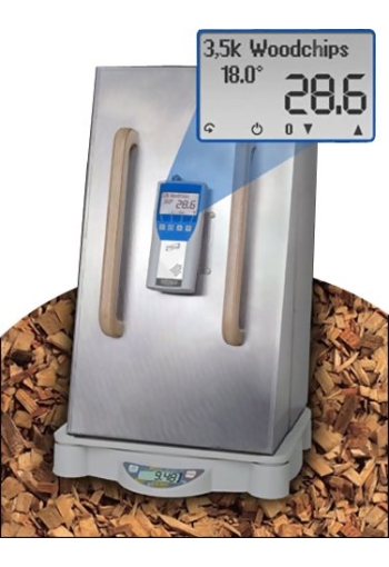 2 Models BM1-KIT BM1 model (Humimeter # 11907) bundled with Scale HM-11656 BM2-KIT BM2 model (Humimeter # 11910) bundled with Scale HM-11656 Humimeter Model BM for testing the moisture content of most types of biomass materials. Highly accurate moisture meter with automatic bulk density compensation for quick determination of water content of wood chips, barks, wooden pellets, elephant grass, wood shavings and sawdust. The entire measurement procedure is extremely easy & only takes seconds. Simply turn on the gauge, collect the desired Biomass test sample and pour into storage bin and view the water content (%-moisture) on the large backlit LCD display. The BM1 and BM2 models both include a built-in datalogger for storage of 10,000 values. The BM2 model is supplied with a serial output for downloading stored data to an external printer, PC-Software or 3rd-Party accounting programs and is supplied with PC-Software, Transfer Cable and USB Converter at no additional cost.