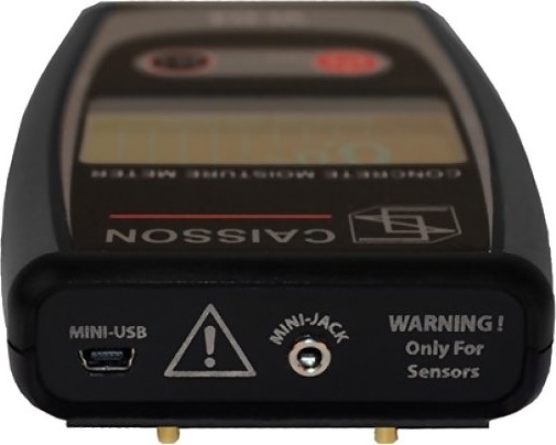 Mini-USB for air humidity and temperature sensors. The equilibrium moisture percentage in concrete can be measured with the proper sensor and the dewpoint can be automatically calculated along with the surface temperature using the available IR-sensor.