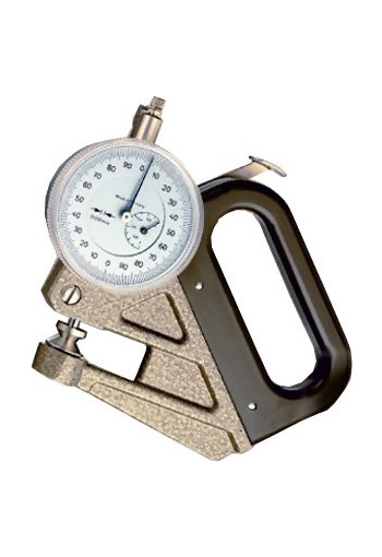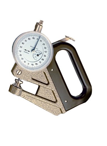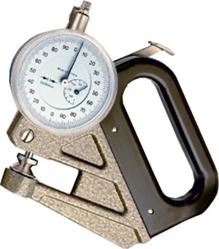 Special-purpose thickness gauge for foils and thin materials with a resolution of 0.001 mm. An insulated handle prevents transfer of heat from the hand to the movement.