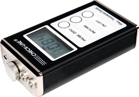 | Range in Steel | 0.040-6.00" (1.00-150.0 mm) | | Resolution | .004" (0.01mm) | | Display | 4½ - Digit, 0.5" Backlit LCD | | Velocity Range | .0787-.3937 in/µs (2000-10,000 m/sec) | | Probe | 1/4", 5 MHz, actual wearface is 5/8" (17mm) | | Probe Wearface | PEEK (Polyethylethylkytone) | | Cable | 4ft. (1.2m) waterproof cable with non-polarized, quick-disconnect connectors. Op | | Temp. Limits | Ambient: -20 to 120° F (-30 to 50° C) Material: 0 to 200° F (-20 to 100° C) Special high temperature probes are optionally available | | Battery Type | Two AA batteries | | Battery Life | 200 hours | | Weight | 710 ounces (280g) | | Dimensions | 2.5 x 4..5 x 1.25" (64 x 114 x 32mm) | | Accessories | Probe/cable assembly, 4 oz. bottle of coupling fluid, NIST Calibration Certificate, 2 AA batteries, operating instructions, hard-plastic carrying case. | | Warranty | Gauge: 5 Years Probes: 90 Days |