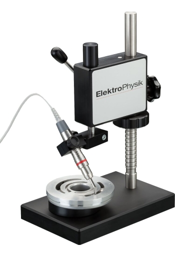 The ElektroPhysik MiniTest Probe Fixture Test Stand is special fixtures are needed for the tube probes for MiniTest 7 series, F 05 for the 4500 series and the tube probes from the 4500 series. Just indicate the sensor type and we will add the required fixture. The base plate features a V-block in order to fix small parts.