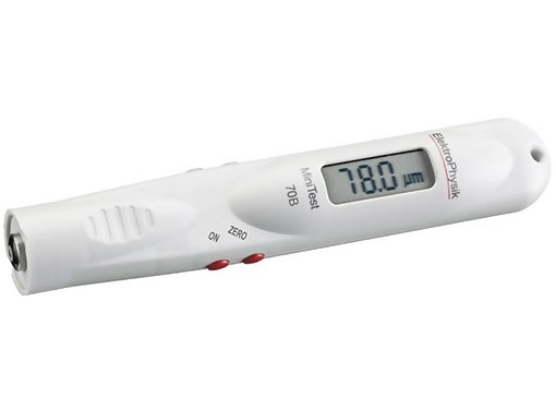 The ElektroPhysik MiniTest 70B Coating Thickness Gauge is a pocket sized, versatile and accurate thickness gauge with built-in sensor. It is a lightweight and handy coating thickness gauge in a pencil format with a built-in sensor. Especially designed for easy operation, this gauge is the ideal tool to measure any non-magnetic coatings on steel and/or any insulating layers on non-ferrous metals. The spring-mounted sensors are equipped with wear-resistant sensor poles and ensure durability even when used for measurements on rough and abrasive substrates.