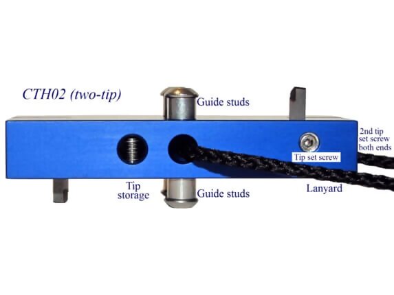 Each tip slot in the CTH02 has two set screws at 90 degrees to each other to securely hold the cutting tip in place.