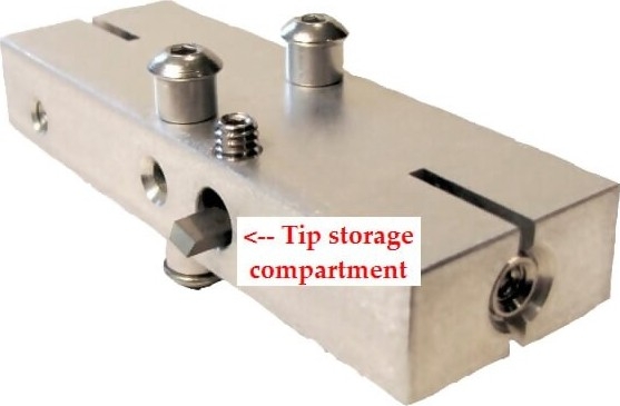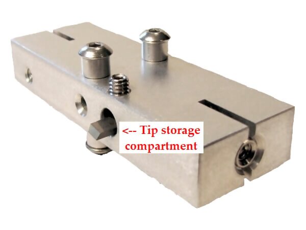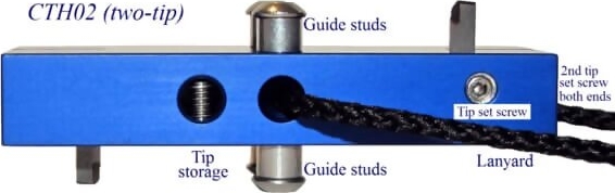If your coatings tend to be right on the cusp between using one tip or another, this two-tip holder lets you keep your two most-used tips at the ready. You can “bracket” your incision angles by mounting two different tips to create different incising geometries.