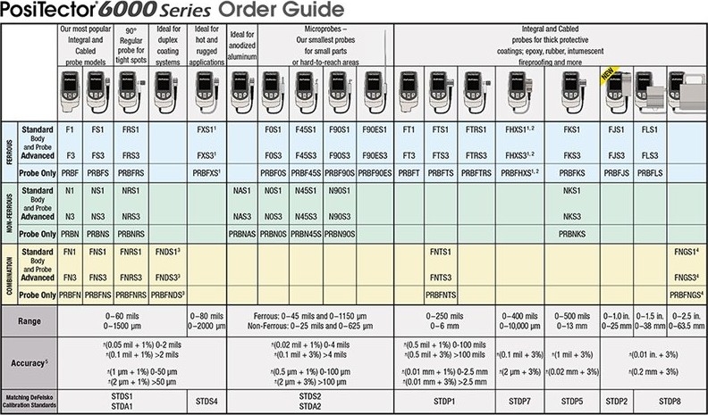 DeFelsko PosiTector 6000 paint thickness probes have different capabilities depending on the model.