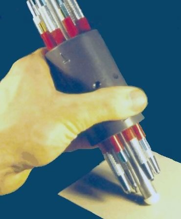 | The Pencil Hardness Gage/Gauge design allows the user to force pencil leads of increasing hardness values against a coated surface in a precisely defined manner until one lead mars the surface. Surface hardness is defined by the hardest pencil grade that fails to mar the painted or coated surface. |  |