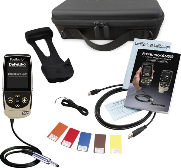 The DeFelsko PosiTector 6000 F0S3 Advanced Coating Thickness Gage Kit includes everything needed for testing: