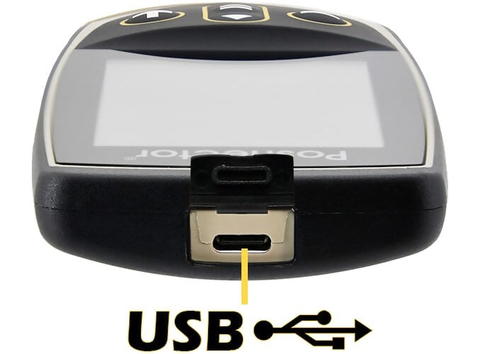 • USB port for fast, simple connection to a PC and to supply continuous power. USB cable included.