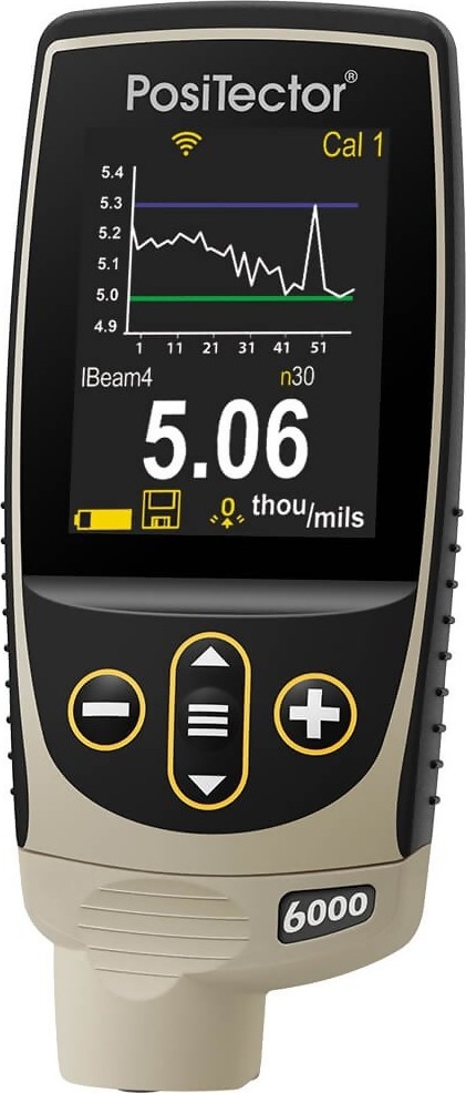 The innovative probe technology and factory calibration in the DeFelsko PosiTector 6000 means that it arrives ready-to-measure - usually there is no need to perform a two-point calibration adjustment. Ruby or alumina probe tips on standard probe models eliminate wear, meaning that the factory calibration is maintained throughout the lifetime of the probe. Whether out of the box or after years of use, DeFelsko PosiTector 6000 will continue to provide accurate results.For highest confidence and best measurement accuracy, observe our “golden rule” - simply check ZERO (or the known thickness of a shim) on the uncoated part, adjust if necessary, and then measure the coated part. This ensures that the probe is properly adjusted for substrate characteristics including mass, metallurgy, curvature, temperature and roughness.