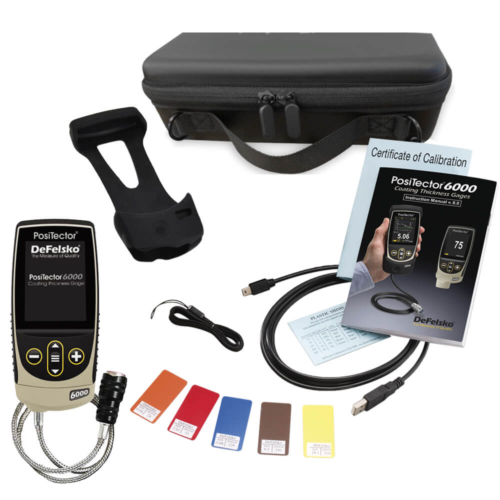 The DeFelsko PosiTector 6000 FHXS1 Standard Coating Thickness Gage Kit includes everything needed for testing:
