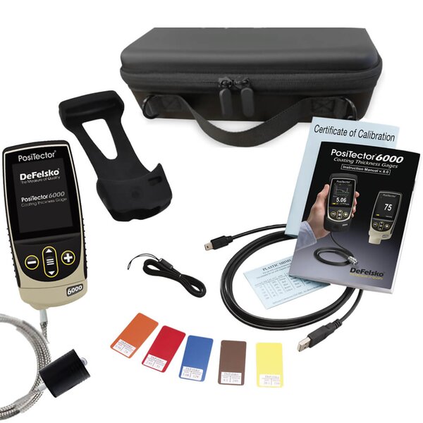 The DeFelsko PosiTector 6000 FLS1 Standard Coating Thickness Gage Kit includes everything needed for testing: