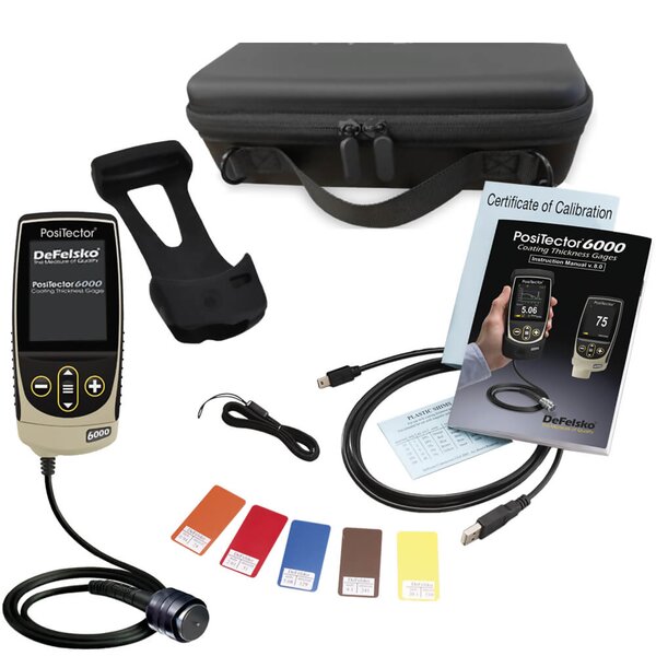The DeFelsko PosiTector 6000 FNTS1 Standard Coating Thickness Gage Kit includes everything needed for testing: