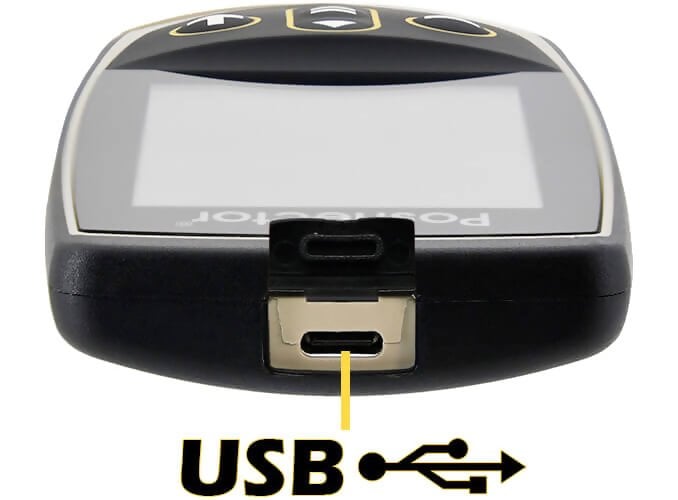 - USB port for fast, simple connection to a PC and to supply continuous power. USB cable included.