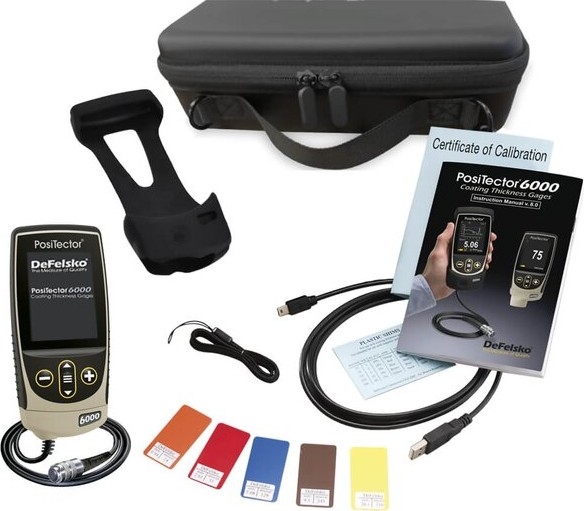 The DeFelsko PosiTector 6000 FS1 Standard Coating Thickness Gage Kit includes everything needed for testing: