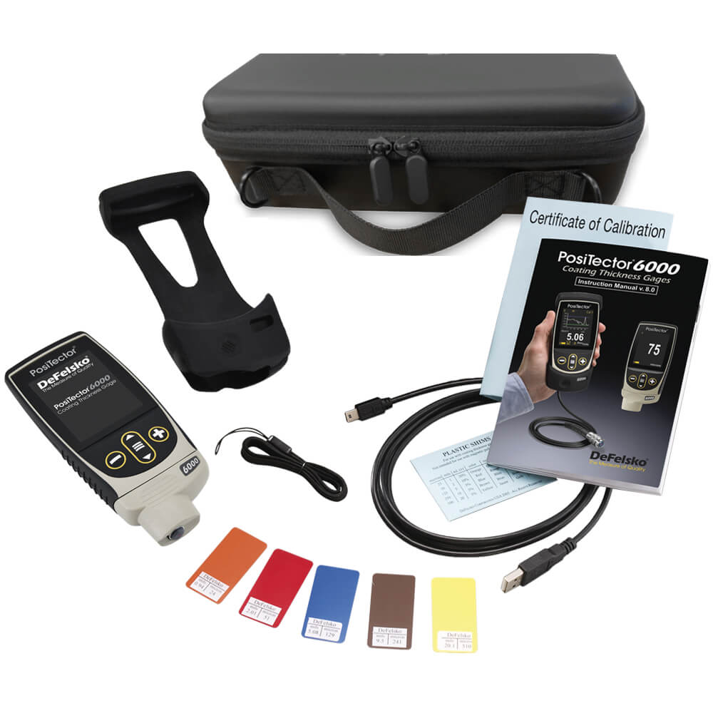 The DeFelsko PosiTector 6000 FT1 Standard Coating Thickness Gage Kit includes everything needed for testing:
