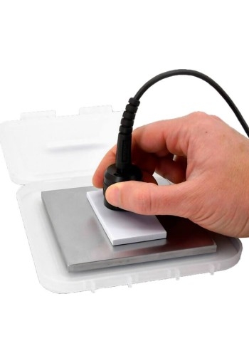 The polystyrene thickness standards are recommended for use with several models of ultrasonic gages. Ultrasonic gages emit a high frequency pulse of sound that travels through the material and reflects back when it encounters a different density material. The thickness of the material is calculated based on the time for the reflection (or echo) to be received and the speed of the sound in the material. Most ultrasonic gages are preset with a ultrasonic velocity that is representative of most coatings. Improved accuracy can be achieved by adjusting the gage's ultrasonic velocity to exactly match the material being measured. Some gage models allow you to directly input the material's velocity if it is known. Other models calculate the material's ultrasonic velocity by measuring a known thickness of a representative material. DeFelsko provides the ultrasonic velocity to allow the calibration standards to be used with either method.