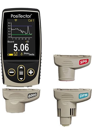 The PosiTector body accepts the PosiTector 6000, DPM, and SPG probes included in the kit easily converting from a coating thickness gauge to a dew point meter or surface profile gauge.