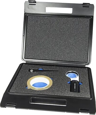 Cross Hatch Cutter is supplied in an industrial Carrying Case with Adhesion Test Tape (60m) and an x3 Illuminated Magnifier.