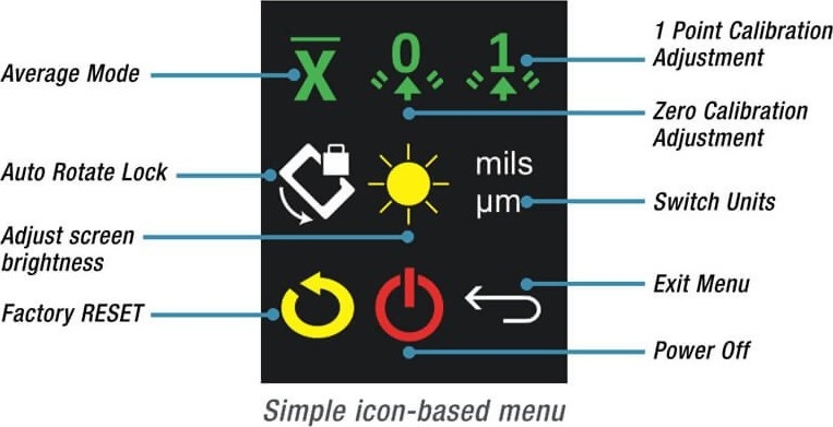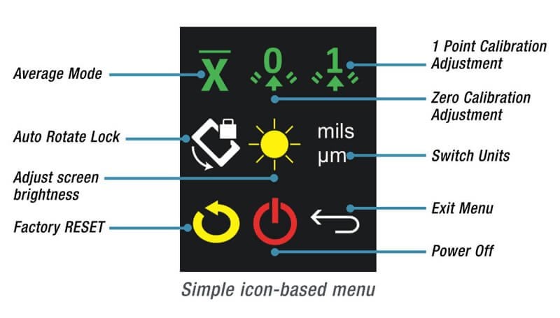 For most applications, the PosiTest DFT is ready to measure right out of the box. When necessary, a Zero or 1 Point adjustment can be performed via the gage menu.