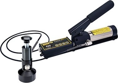 - Manual hydraulic pump designed to apply smooth and continuous pressure with a single stroke
