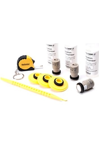 Add additional reusable PosiTector CMM IS smart probes as required. Each pack consists of a probe, calibration check chamber, saturated salt solution, (NaCl), cap, 2 stackable probe extensions, and A-76/LR-44 coin cell batteries
