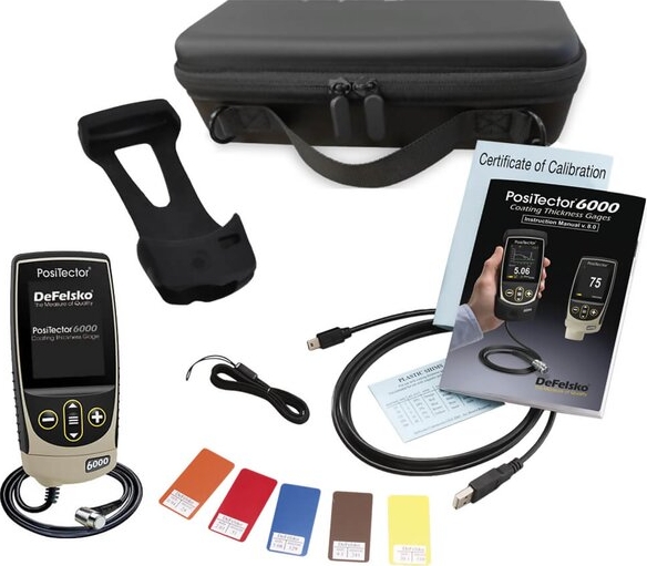 The DeFelsko PosiTector 6000 FTRS1 Standard Coating Thickness Gage Kit includes everything needed for testing:
