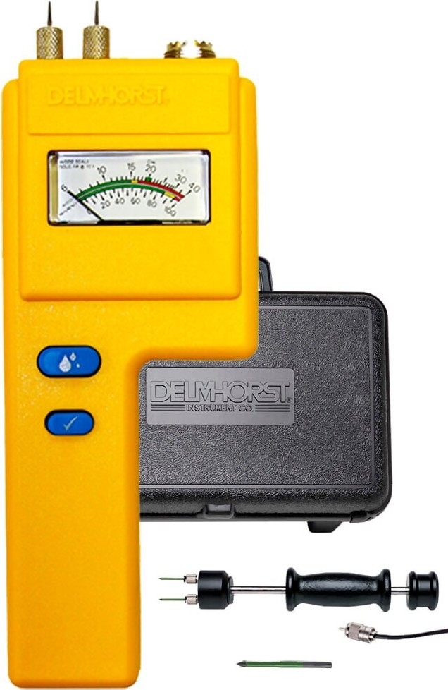 Delmhorst Moisture Meters are well known for their ruggedness and ability to withstand years of rough handling. Like any testing instrument, a little care goes a long way toward trouble-free service: