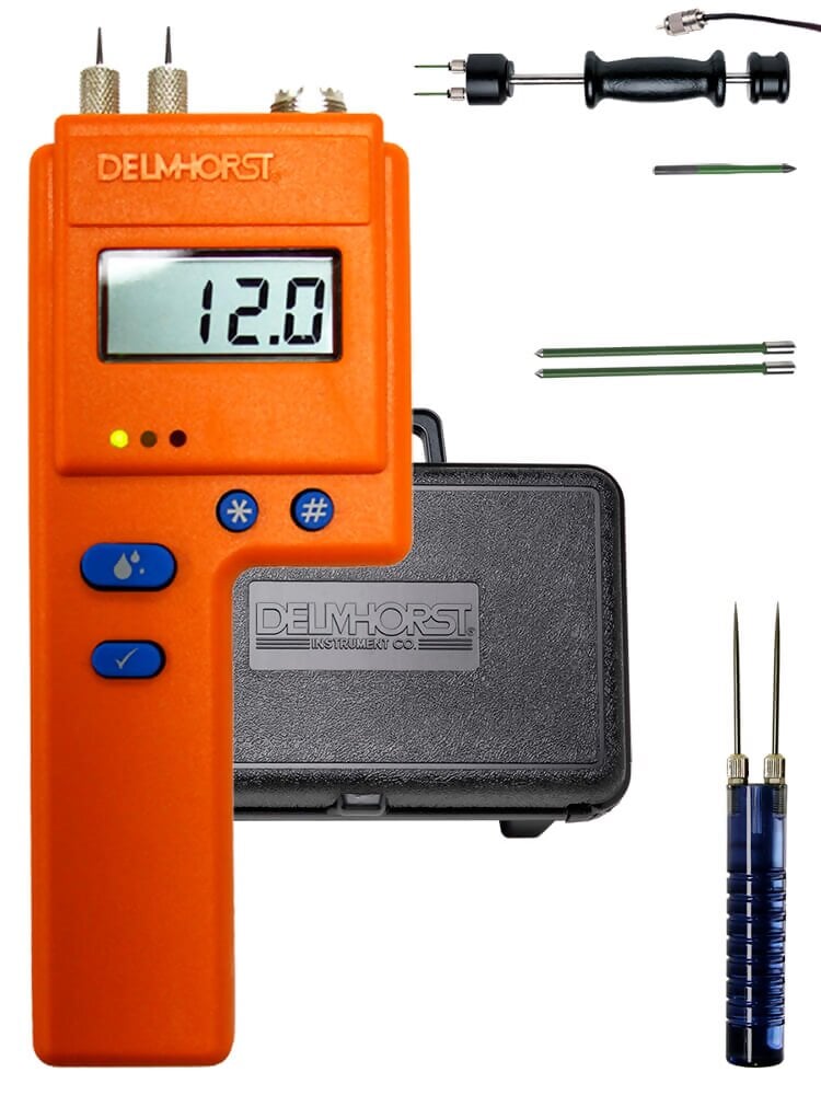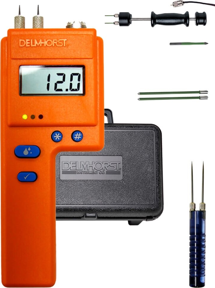 Delmhorst Moisture Meters are well known for their ruggedness and ability to withstand years of rough handling. Like any testing instrument, a little care goes a long way toward trouble-free service: