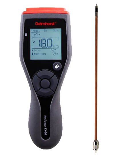 The Delmhorst FX-20 Digital Moisture Meter for Hay is the latest in the new Navigator family of moisture meters from Delmhorst. Uniquely designed for use in the field with a dashboard-like display that is easy to read under most conditions, and large, easy to use navigation buttons.