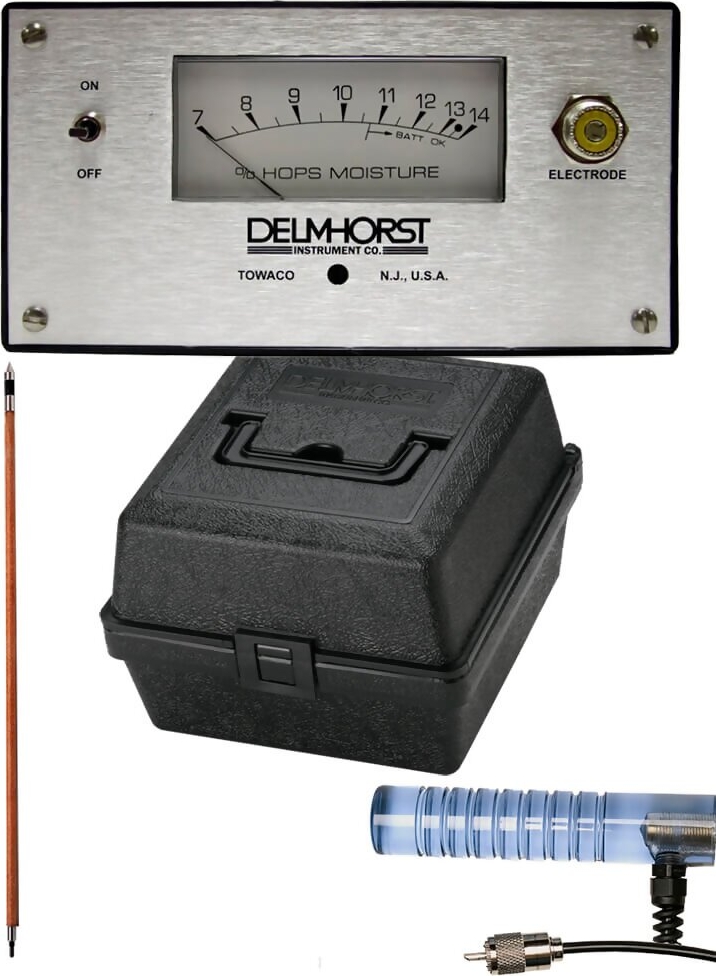 The Delmhorst G-34 Hops Moisture Meter lets you easily check moisture levels in baled hops to assure high-quality harvest and safe storage. The large analog display and built-in battery check make this a favorite among hop growers worldwide.