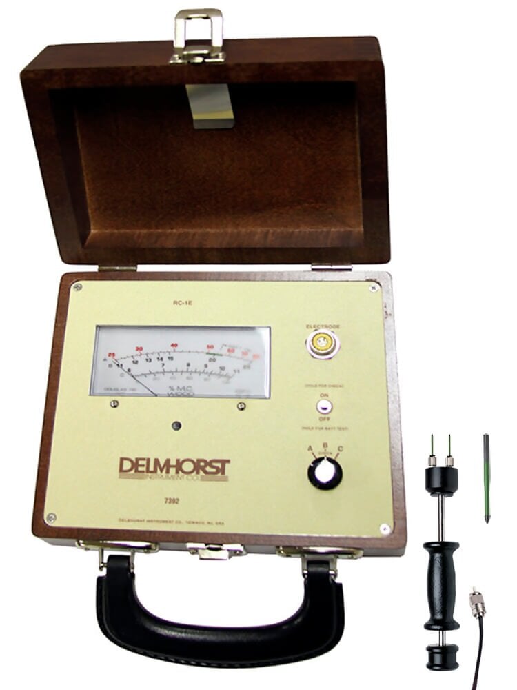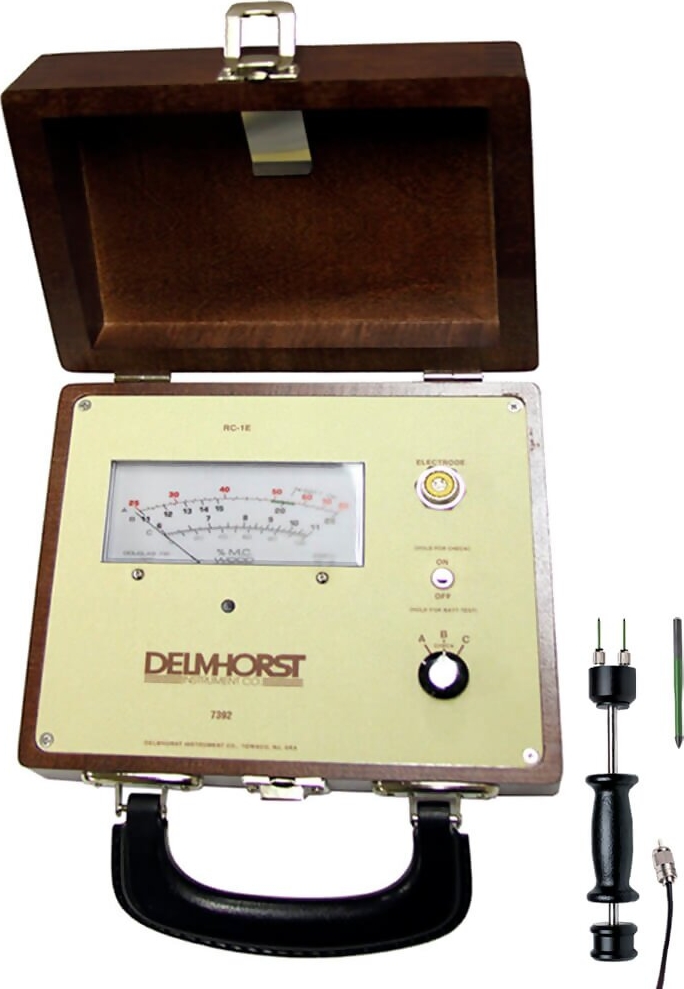 Clad in a durable and beautifully finished hardwood case, the RC-1E’s classic design and wide moisture measurement range make it a valuable addition to your toolkit. The Delmhorst RC-1E Wood Moisture Meter has been a favorite among dry kiln operators for years.