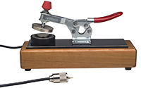 Clamp type for testing thin sheet stock. The sample tested is compressed between two smooth discs.
