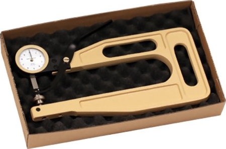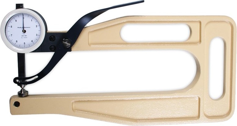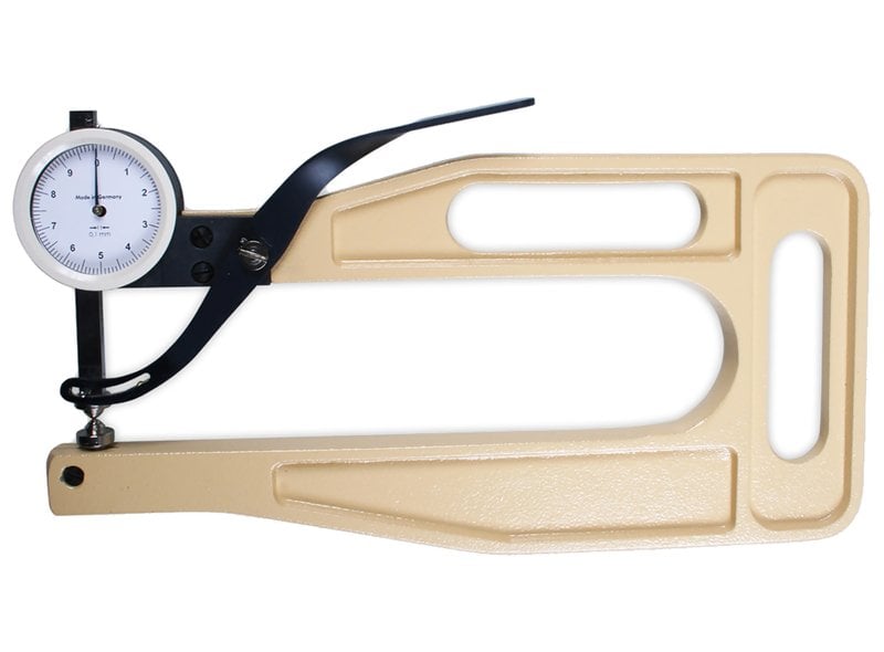 The Checkline DM-820 analog metric dial thickness gauge is used to determine the thickness of leather, textiles, cardboard, felt, rubber, sheet metal, foil, plywood, plastic, etc. Self closing thickness gauge with high accuracy and resolution.
