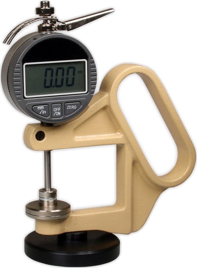 The Checkline DMD-3-1 Digital Thickness Gauge is used to determine the thickness of leather, textiles, cardboard, felt, rubber, sheet metal, foil, plywood, plastic, etc. Self closing thickness gauge with high accuracy and resolution.