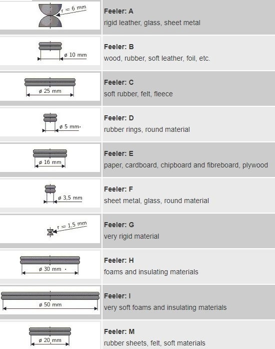 | Feeler: B wood, rubber, soft leather, foil, etc. |