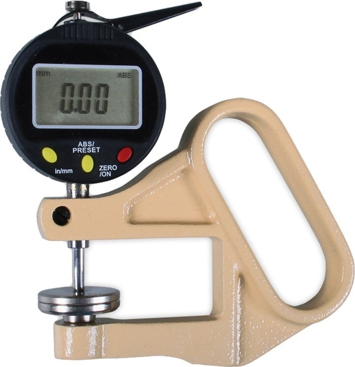 The Checkline DMD-3 Digital Thickness Gauge is used to determine the thickness of leather, textiles, cardboard, felt, rubber, sheet metal, foil, plywood, plastic, etc. Self closing thickness gauge with high accuracy and resolution.