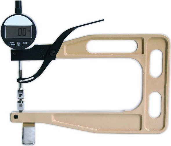 The Checkline DMD-820-1 Digital Thickness Gauge is used to determine the thickness of leather, textiles, cardboard, felt, rubber, sheet metal, foil, plywood, plastic, etc. Self closing thickness gauge with high accuracy and resolution.