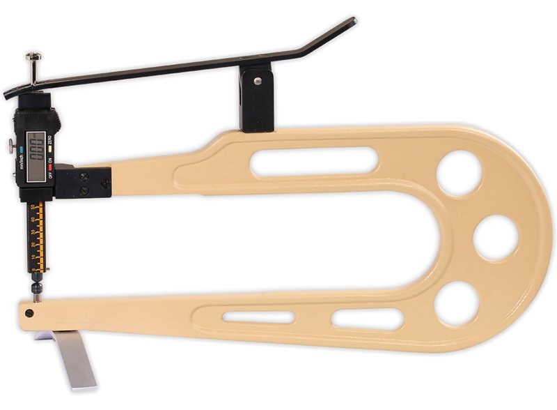 The Checkline MDM-830-1 Digital Thickness Gauge is used to determine the thickness of leather, textiles, cardboard, felt, rubber, sheet metal, foil, plywood, plastic, etc. Self closing thickness gauge with high accuracy and resolution.