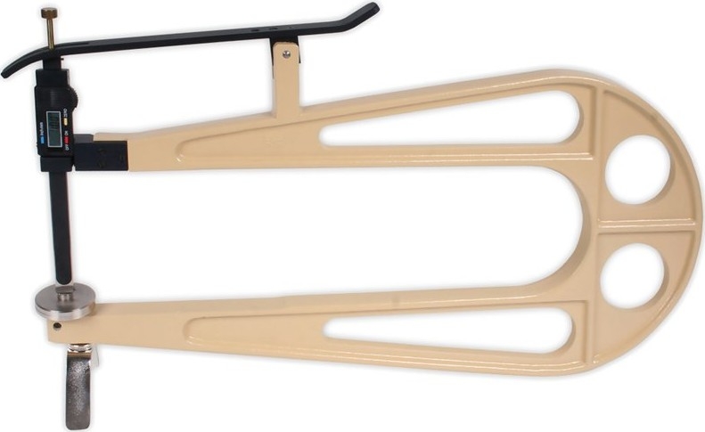 For determining the thickness of leather, textiles, cardboard, felt, rubber, sheet metal, foil, plywood, plastic, etc