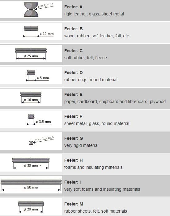 | Feeler: B wood, rubber, soft leather, foil, etc. |