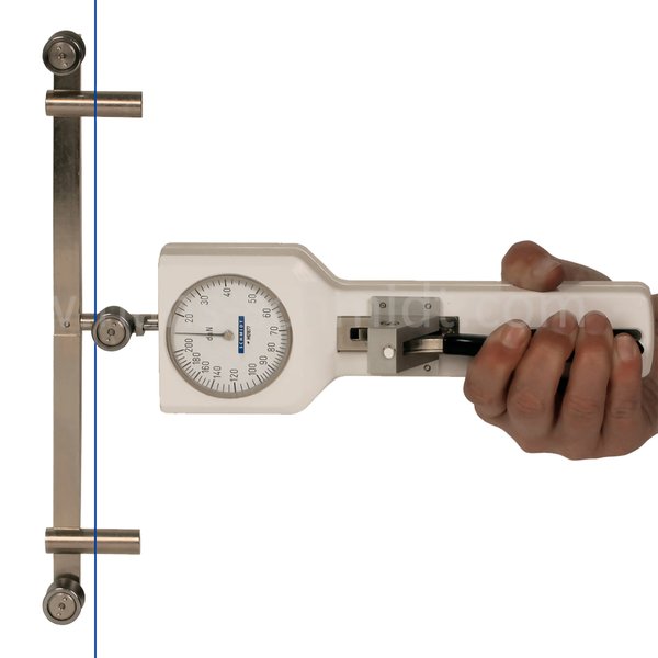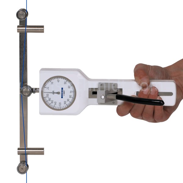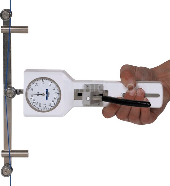 Rugged mechanical tension meter for measuring pretensioned ropes up to 4 mm