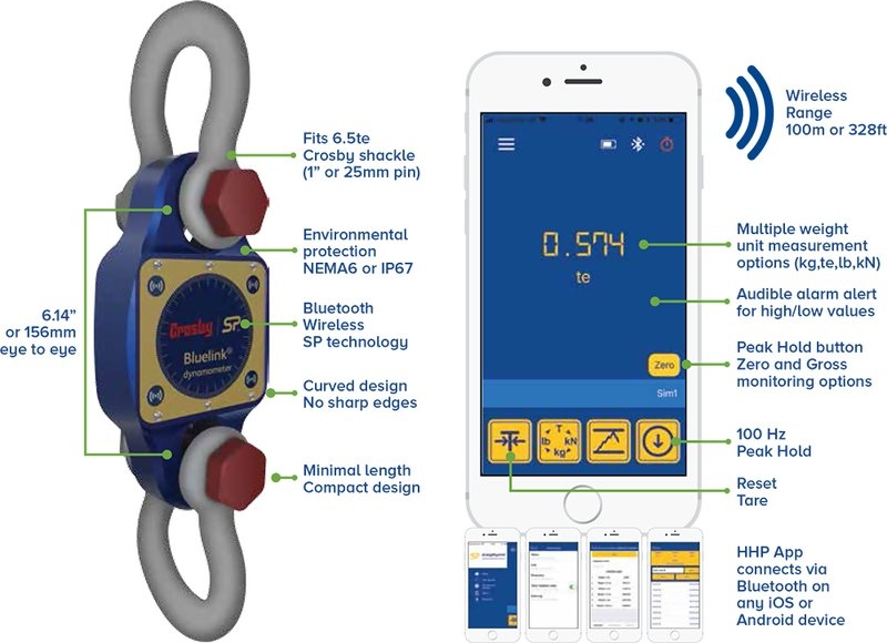 The long-range Bluetooth signal connects to any iOS or Android device that has our free HHP app installed, providing the operator with a wireless range of up to 328ft / 100m. This allows them to stand in a safe position away from the load, with no requirement to read directly from the dynamometer. The app will also allow the operator to log data versus time or on events such as over or underload. An adjustable alarm will alert the operator on their smartphone if any overload is occurring.