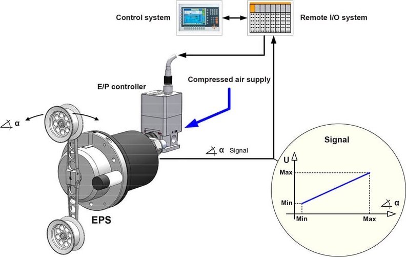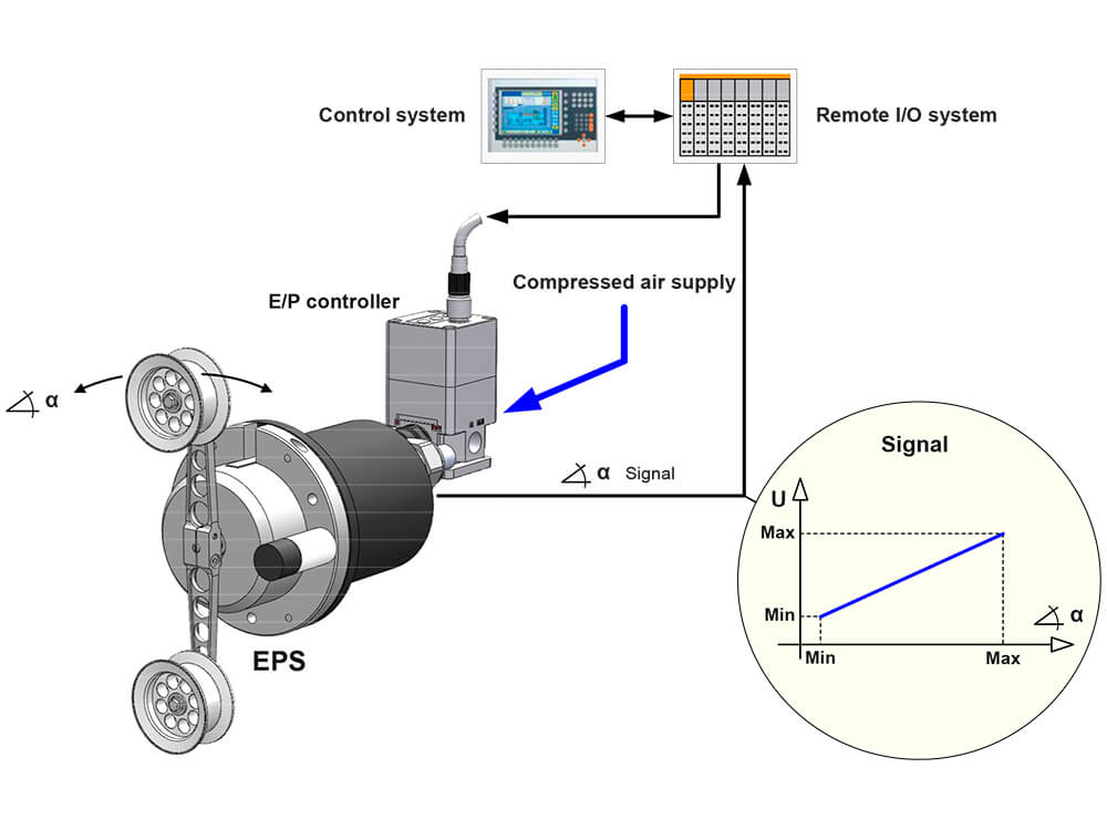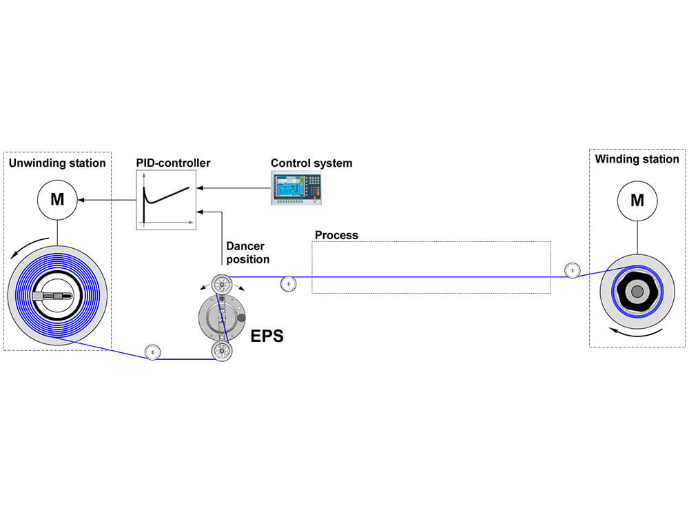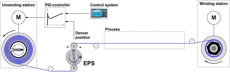 EPS is a control dancer and used for closed-loop tension control on winding of endless material. It is a considered and "active" dancer control system. EPS is operated as an electrically controlled P/F actuator providing a large range of adjustment for the user-set desired tension level