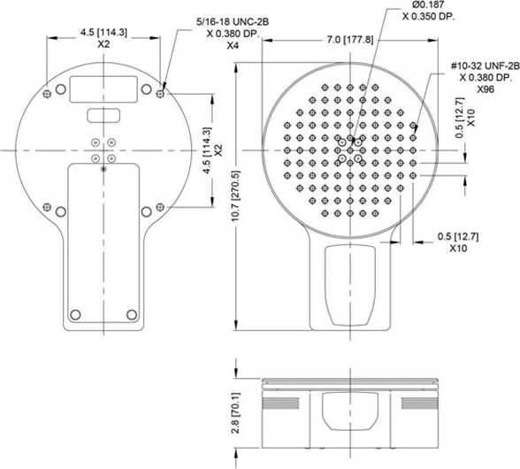 • Stainless steel loading plate with #10-32 threaded holes accommodates fixtures and attachments