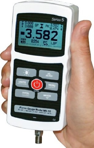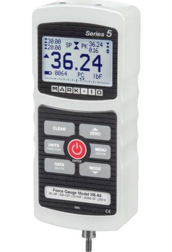 The Mark-10 Series 5 Advanced Digital Force Gage are designed for tension and compression force testing in quality control, manufacturing, and R&D areas. A range of capacities from 0.12 lb to 500 lb (0.5 N to 2500 N) is available to address numerous applications in the medical device, pharmaceutical, packaging, consumer products, automotive, aerospace, and other industries.