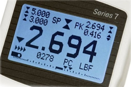 The Mark-10 Series 7 professional digital force gauges are designed with a number of sophisticated features for the most demanding tension and compression measurement applications, up to 500 lbF (2500 N). The gauges feature ±0.1% accuracy and a blazingly fast, industry-leading sampling rate of 14,000 Hz, producing reliable results for extremely quick-action tests.