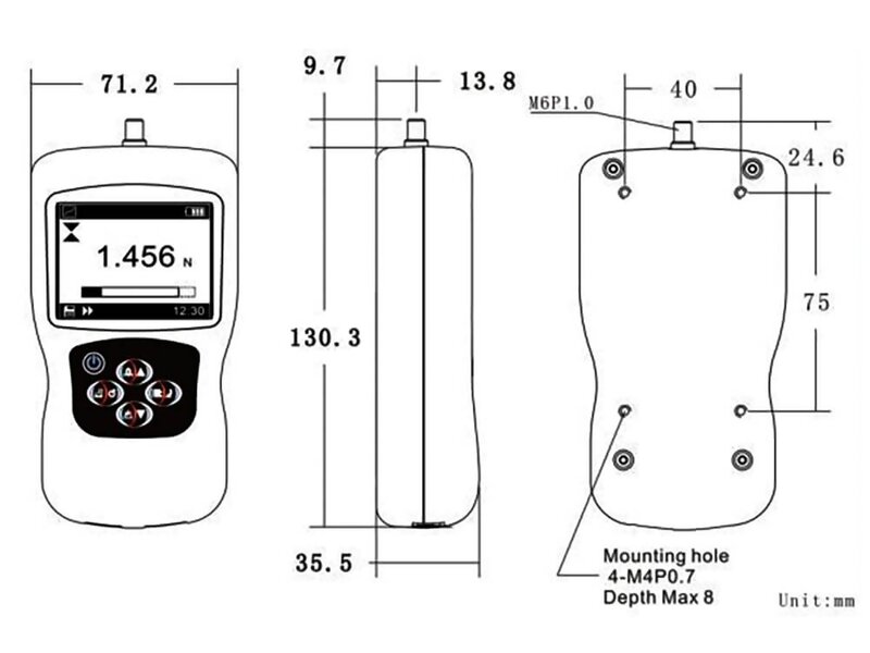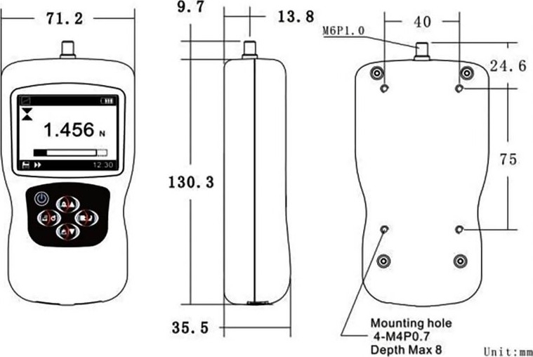 Shimpo FG-3000 Digital Force Gauge - Dimensions